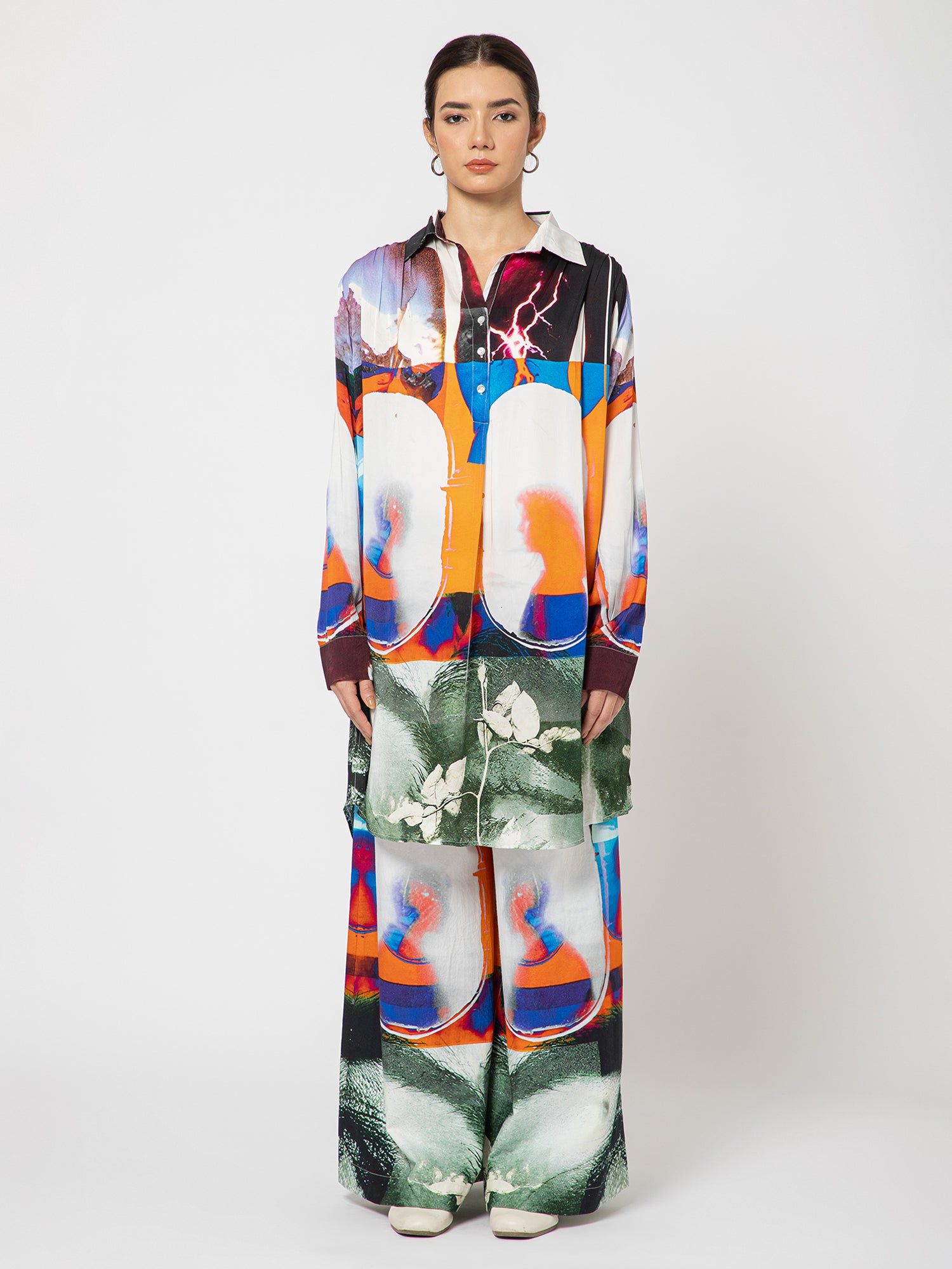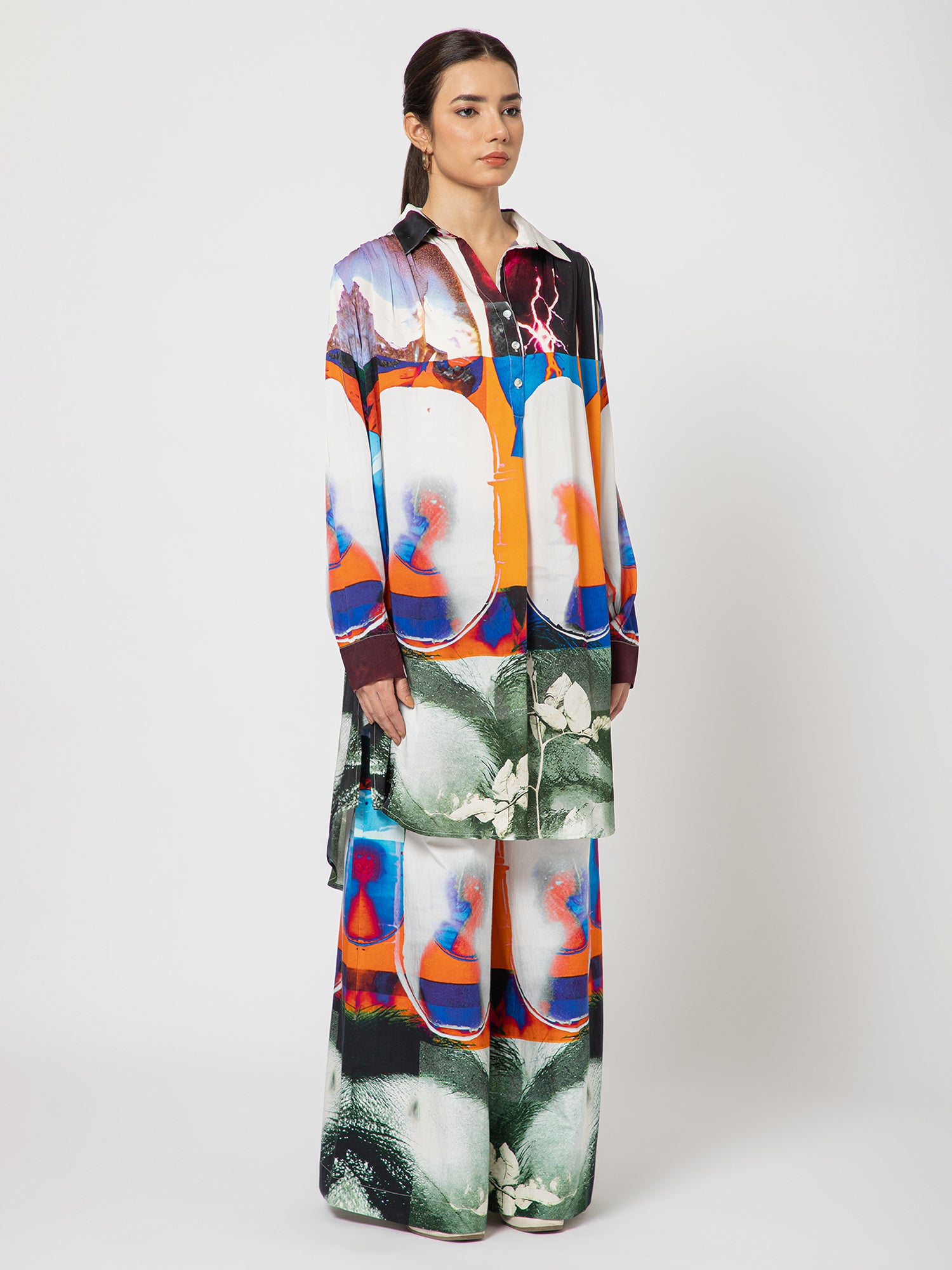 This Kurta captures a moment suspended between distance and connection — two strangers sitting by separate windows, unaware that love is already weaving them together. Each panel tells its half of the story: quiet glances through open frames, light and shadow playing like unspoken words. Crafted with precision and emotion, the design turns everyday wear into visual poetry — where art meets intimacy.